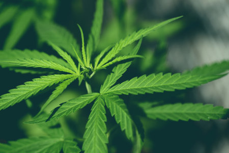 Green cannabis leaves close up