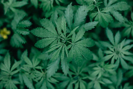 Cannabis leaf background. Green leaves of marijuana plant. Growing cannabis indica.