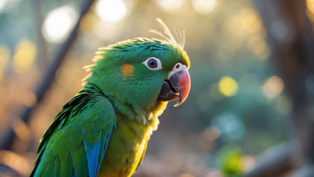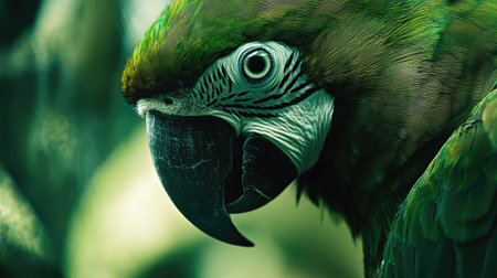 Captivating close-up of a parrot in its natural habitat showcasing vibrant green feathers and intricate facial details. This image celebrates wildlife.