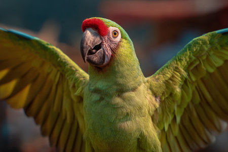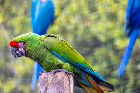 Close up view of a great green macaw (Ara ambiguus) bird.