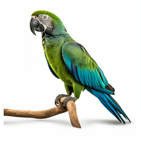 hahn's macaw, a vibrant parrot species, is captured in a full-body shot against a clean white background. this isolated image showcases the stunning colors and unique features of the hahn's macaw, making it a perfect choice for bird enthusiasts and nature lovers. ai generated
