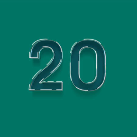 20 number on a green background with shadow - 3D illustration of numbers