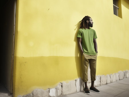 Serious african young man posing on urban background with arms crossed Pensive guy wears round hat standing in confident pose near wall : Generative AI