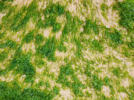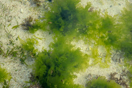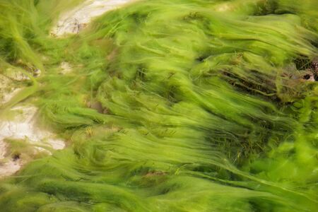 greenery background of underwater grass at low tide on the ocean coast in spring