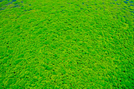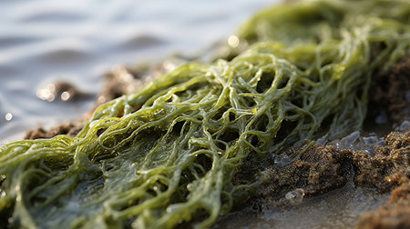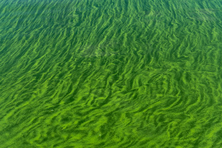 close-up of algae bloom, caused by high levels of nutrients in water, created with generative ai