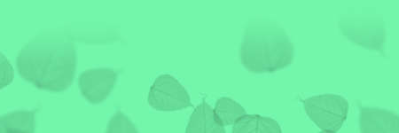Green leaf on green background. Environmental and ecology care concept. Horizontal eco theme poster, greeting cards, headers, website and app
