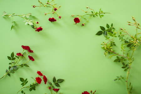 Christmas concept. Green branches of a Christmas tree on a green background, top view, flat lay.