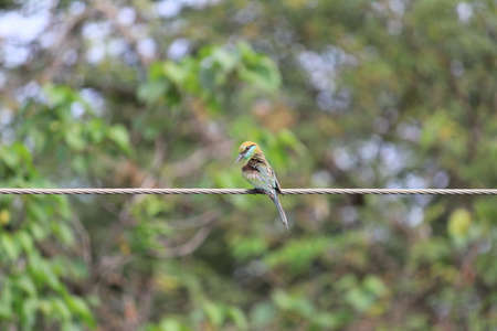 Little green bee eater perched on a power line