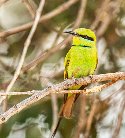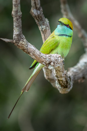 Green Bee-Eater bird perched on a branch waiting for insects to be eaten