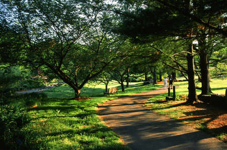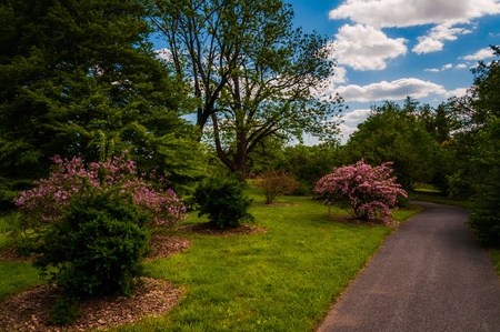 Path through trees and bushes at Cylburn Arboretum, Baltimore, Maryland.