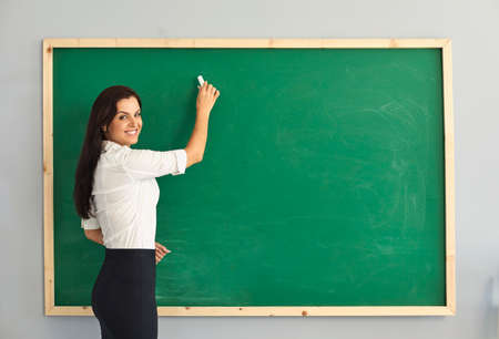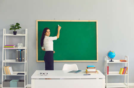 The teacher writes a lesson on the blackboard at school. Learning to teach education at a lyceum college school for children of students