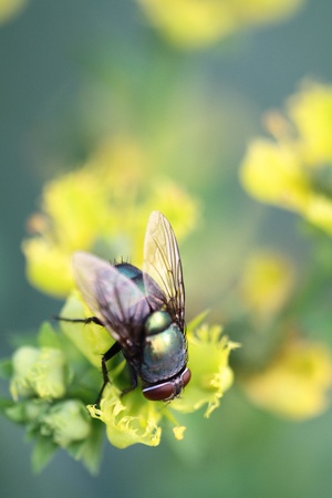 Closeup of a common green bottle fly, Lucilia sericata, resting