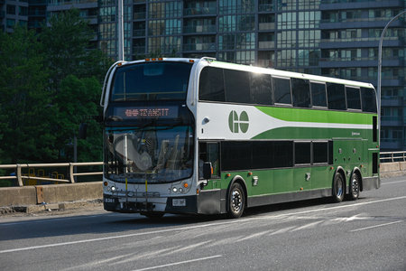 Toronto, ON, Canada – April 23, 2024: View at the Go company sign in the bus.