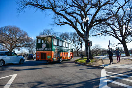 Washington DC, USA. Street view and life of Washington city near Capitol, Washington Monument and Holocaust Memorial Museum.