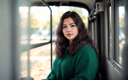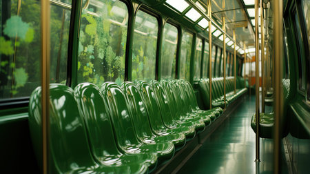 Interior perspective captures the calm and inviting atmosphere of a bus, showcasing vacant seats and clean design for an efficient transit.
