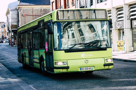 Reims France July 02, 2018 View of the bus of the city of Reims in France in the morning