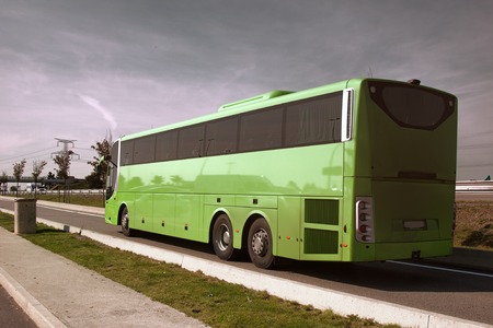 Passenger bus on stop, long-distance trips, passenger-carrying coach, mass transit bus, civil passenger traffic, bus trip
