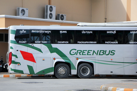 CHIANGMAI, THAILAND -SEPTEMBER 30 2015: New Scania 15 Meter bus of Greenbus company. Route Phuket and Chiangmai. VIP bus with personal lcd tv, Photo at Chiangmai bus station, thailand.