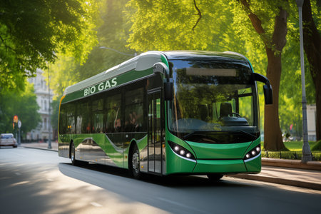 Bus powered by bio gas on a city street. Carbon neutral transportation concept