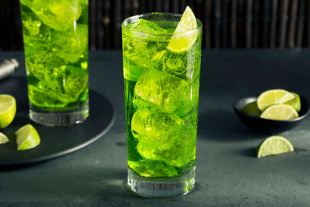 Non alcoholic healthy detox lemon, lime green sparkling cocktail. Vitaminized healthy drink