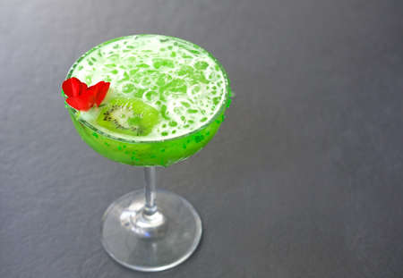 Kiwi Daiquiri, Refreshing Cuban cocktail on gray background. Summer Color Trends, Attention-grabbing Palettes.