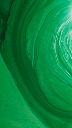 Free flowing green acrylic paint. Random Waves and Curls. Abstract marble background or texture.