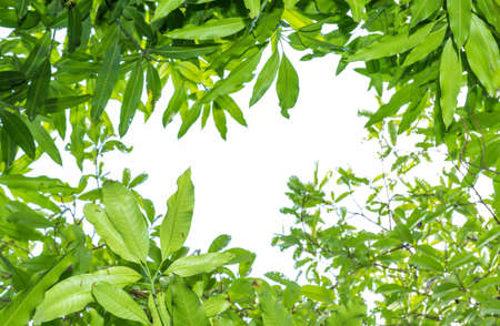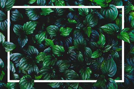 Top view plant and paper Frame. Green leaf plant and Frame with copy space.Square frame layout with nature concept and copy Space.