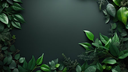 A high-quality image showcasing a lush arrangement of green leaves and foliage framing a dark background, perfect for nature-themed designs, graphics, or wallpapers.