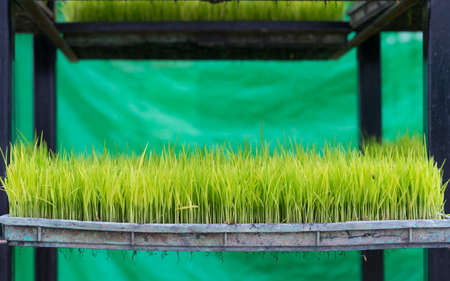 demonstrated young rice sprout, a collection of seedlings, Seedlings of rice ready for planting in rice field.