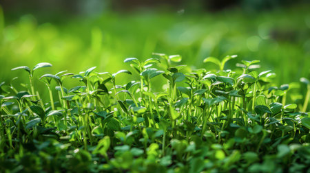 Close-up of vibrant green microgreens with rich textures. Fresh herbs for healthy eating and DIY gardening.