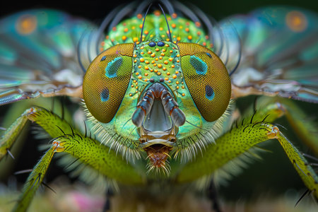 An AI generated illustration of a macro of a fly with vibrant green legs
