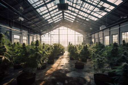 high-ceilinged room with natural light, showcasing the beauty of cannabis plants, created with generative ai