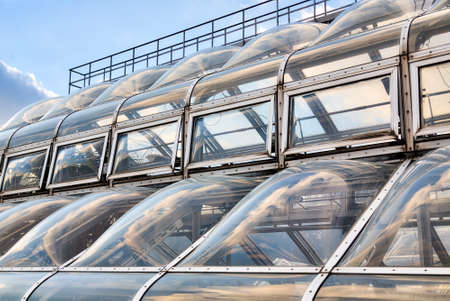 futuristic window facade with reflecting sky