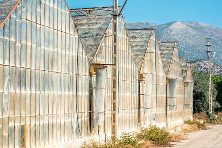 Beautiful view of a greenhouse in the sun. Sunlight through the glass.
