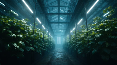 Cultivating the Future: Sustainable Farming Inside an Industrial Greenhouse, Generative AI