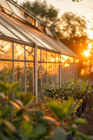 Sunrise Over a Greenhouse Exterior: Tranquility and Growth for Design and Inspiration