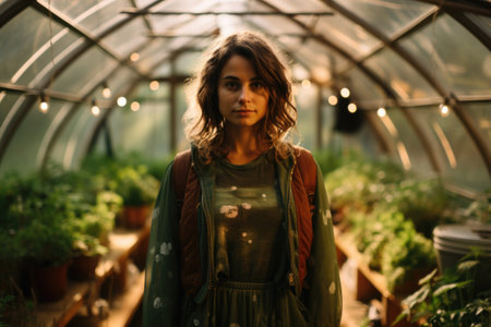 Woman Standing in Greenhouse.