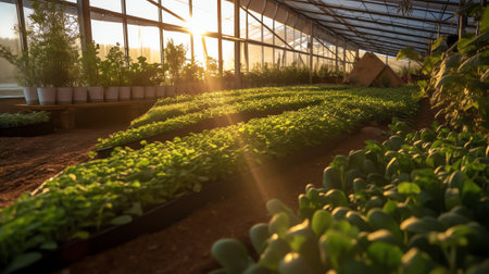 stock photo of growing plants in greenhouse garden photography Generated AI