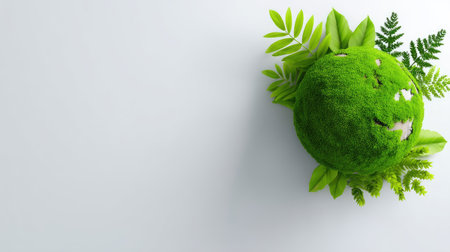 Planet on green background with copy space concept for Earth Day. Banner. With Generative AI technology.