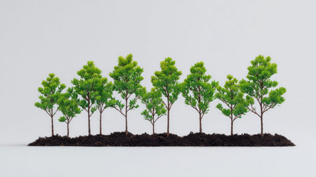 Image features small green trees growing from rich soil, ideal for themes around nature, sustainability, and eco-friendly practices. Perfect for garden, landscape, and environmental projects.