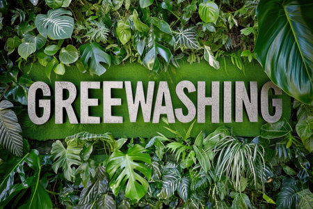 GREENWASHING in bold letters, showing verdant foliage inside, serves as a symbol of misleading eco-friendly marketing practices