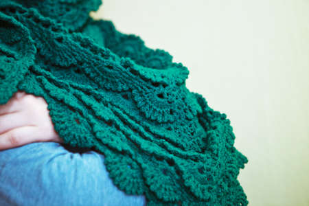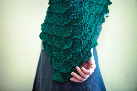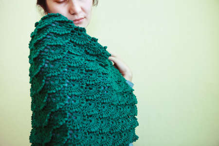 Young women shows Green knitted shawl