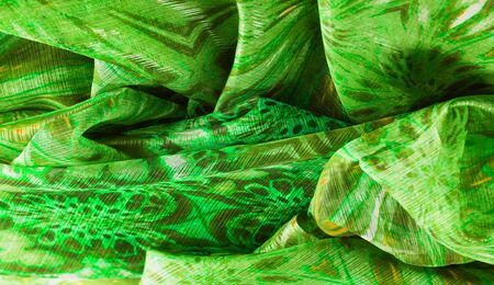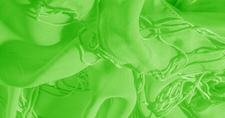 Background texture of silk fabric. This is a natural green salad scarf, this beautiful nylon satin made of artificial silk with a transparent hand and a wonderful sheen is perfect for your projects.
