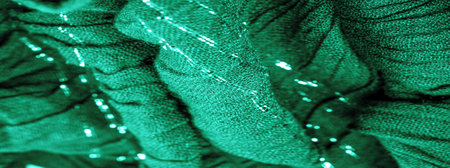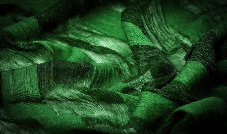 Background texture, pattern. Silk from a greenish emerald shade. This luxurious silk chiffon fabric is a show-stopper. It is clean, has a liquid drape and ultra soft. It is perfect for your design.