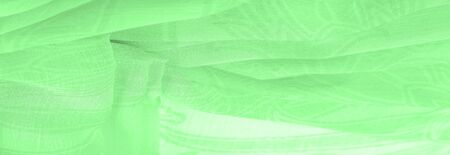 Texture. template. Pale green silk polyester. Background from color lime green silk fabric. Textured background made of transparent and light fabric for sewing clothes. Textile panorama