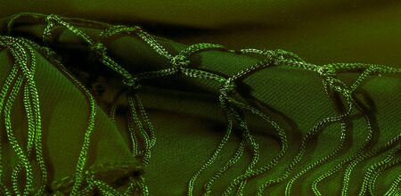Texture, background, design, shawl from green female lace, crochet from green lace, fringe, hand knitting. Flower festival. Present of your design, wedding triangle, greeting card for the bride.