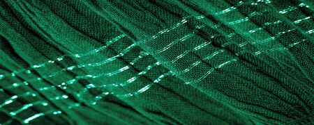 Background texture, ornament decor, emerald green centered corrugated fabric, fabric with parallel or diagonal folds of serrated folds; products from such a fabric.