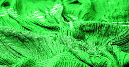Green silk fabric. Shirred fabrics, fabrics with parallel or diagonal folds with serrated folds.