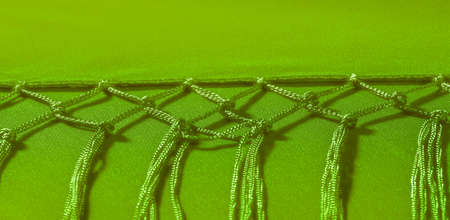 Macrame knots decorating a green crumpled shawl