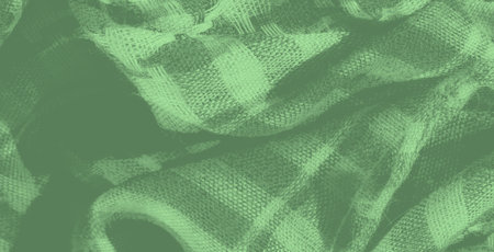 Blur the structured green fabric with intricate weaving and pattern details, producing a rich and complex visual texture ideal for adding dimension to any textile-focused design.